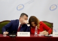 The chairman of the SP parliamentary group, Taulant Balla and Blerina Gjylameti speaking during a table discussion in the premises of the parliament headquarters regarding the opening of files to former security and their removal from Albanian politics. During the discussions, the proposal of the group supporting Sali Berisha was excluded, while both sides agreed on the complete opening of the files.