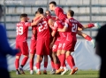Partizani players celebrate scoring a goal during the football match Teuta o Durresi vs Partizani of Tirana, 0-2, valid for the Albanian Super League, played at the Niko Dovana stadium in Durres.