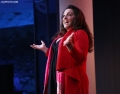 Historian Bettany Hughes speaking during the first day of the International Tourism Forum in Tirana (FESTA), held in the Palace of Congresses. During the three days of the forum, 70 speakers will discuss important topics related to sustainable tourism and its future trends, such as the role of governments, development strategies, professions and new profiles of this sector.