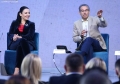 The Deputy Prime Minister and the Minister of Infrastructure and Energy, Belinda Balluku and the Investor from the United Arab Emirates, Mohamed Alabbar speaking during the second day of the International Tourism Forum in Tirana (FESTA) ) held in the Palace of Congresses. During the three days of the forum, 70 speakers will discuss important topics related to sustainable tourism and its future trends, such as the role of governments, development strategies, professions and new profiles of this sector.