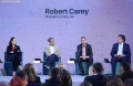 President of Wizz Air, Robert Carey and Director of Abi Bank, Andi Ballta speaking during the second day of the International Tourism Forum in Tirana (FESTA) held in the palace of Congresses. During the three days of the forum, 70 speakers will discuss important topics related to sustainable tourism and its future trends, such as the role of governments, development strategies, professions and new profiles of this sector.