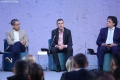 Investor from the United Arab Emirates, Mohamed Alabbar, President of Wizz Air, Robert Carey and Director of Abi Bank, Andi Ballta speaking during the second day of the International Tourism Forum in Tirana (FESTA) held in the palace of Congresses. During the three days of the forum, 70 speakers will discuss important topics related to sustainable tourism and its future trends, such as the role of governments, development strategies, professions and new profiles of this sector.