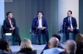 Deputy Prime Minister and Minister of Infrastructure and Energy, Belinda Balluku, Investor from the United Arab Emirates, Mohamed Alabbar, President of Wizz Air, Robert Carey and Director of Abi Bank, Andi Ballta speaking during the second day of the International Tourism Forum in Tirana (FESTA) held in the palace of Congresses. During the three days of the forum, 70 speakers will discuss important topics related to sustainable tourism and its future trends, such as the role of governments, development strategies, professions and new profiles of this sector.