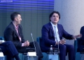 The President of Landways International, Gazmend Haxhia the Deputy Prime Minister and the Minister of Infrastructure and Energy, Belinda Balluku and the Investor from the United Arab Emirates, Mohamed Alabbar speaking during the second day of the International Tourism Forum in Tirana (FESTA) ) held in the Palace of Congresses. During the three days of the forum, 70 speakers will discuss important topics related to sustainable tourism and its future trends, such as the role of governments, development strategies, professions and new profiles of this sector.