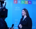Minister of Tourism and Environment, Mirela Kumbaro speaking during the second day of the International Tourism Forum in Tirana (FESTA) held in the palace of Congresses. During the three days of the forum, 70 speakers will discuss important topics related to sustainable tourism and its future trends, such as the role of governments, development strategies, professions and new profiles of this sector.