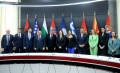 Participants posing during the second day of the International Tourism Forum in Tirana (FESTA) held in the Palace of Congresses. During the three days of the forum, 70 speakers will discuss important topics related to sustainable tourism and its future trends, such as the role of governments, development strategies, professions and new profiles of this sector.