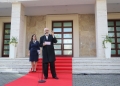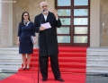RAMA AND IBRAHIMAJ IN PRESS CONFERENCE - Prime Minister Edi Rama giving notes to the Ministry of Finance and Economy, Delina Ibrahimaj during a press conference in front of the Prime Minister's office. During it, Prime Minister Edi Rama and Minister Delina Ibrahimaj spoke about the promise to increase the average salary to 900 euros. At the same time, Prime Minister Rama said that he is analyzing the possibility of Albania leaving the jurisdiction of ICSID, the International Center for the Settlement of Investment Disputes (International Arbitration), after the decision for the former owner of Agon Channel, Francesco Becchetti.