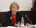 The head of the ODIHR mission for the local elections in Albania, Audrey Glover speaking during a press conference, after arriving in Albania as part of the observation mission for the May 14 elections. The Head of the Mission said that the international community is here to see the level of commitment of Albania regarding the standards of the election processes. Asked if she would meet with Sali Berisha, Glover said that he will meet with every politician who is involved in the elections.
