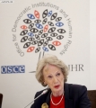 AUDREY GLOVER IN CONFERENCE - The head of the ODIHR mission for the local elections in Albania, Audrey Glover after a press conference, after arriving in Albania as part of the observation mission for the May 14 elections. The Head of the Mission said that the international community is here to see the level of commitment of Albania regarding the standards of the election processes. Asked if she would meet with Sali Berisha, Glover said that he will meet with every politician who is involved in the elections.