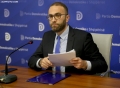 General Secretary of DP, Gazment Bardhi speaking at a press conference. Bardhi stated that he has submitted a request to the CEC for the ban on the candidacy of the SP candidate in Mallakaster Qerim Ismailaj. Bardhi said that Ismailaj, in addition to a conviction in Greece, also has a conviction from GJKKO in Albania, while he attacked the State Commissioner of Elections, Ilirjan Celibashi, for allowing his candidacy.