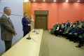 General Director of the State Police, Muhamet Rrumbullaku, Minister of the Interior, Bledar Cuci and Deputy Minister of the Interior, Julian Hodaj during the procedure of casting the first lot for the transitory and periodic evaluation (vetting) of the employees of the State Police, the National Guard Republic and the Police Supervision Agency. At the end of it, 36 evaluation subjects were drawn that will undergo vetting in the three evaluation pillars; purity of face, wealth and professional skills.