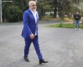 Prime Minister Edi Rama leaving the headquarters of the Socialist Party before the opening of the electoral campaign of the Socialist Party for the local elections on May 14. During the ceremony held in Skenderbej Square, the motto Never Back, Forward was revealed for these elections, while Prime Minister Edi Rama, party deputies and candidates for the country's municipalities planted 61 trees to symbolize the country's 61 municipalities.
