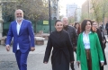 Speaker of parliament, Lindita Nikolla, Prime Minister Edi Rama and Deputy Prime Minister and Minister of Infrastructure and Energy, Belinda Balluku and Minister of State for Relations with the Parliament, Elisa Spiropali before the opening of the electoral campaign of the Socialist Party for the local elections on May 14. During the ceremony held in Skenderbej Square, the motto Never Back, Forward was revealed for these elections, while Prime Minister Edi Rama, party deputies and candidates for the country's municipalities planted 61 trees to symbolize the country's 61 municipalities.