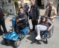 Paraplegic people talking to journalists during a protest in front of the Tirana Municipality. They protested the lack of special infrastructure in Tirana! They say that the lack of ramps near the polling stations endangers their right to vote on May 14.