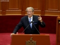 MP Sali Berisha speaking during a parliamentary session, in which the request of 35 opposition MPs for the establishment of an investigative commission to verify the procedures on the Port of Durres project was rejected and MP Shkelqim Bullari was sworn in.