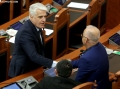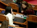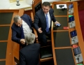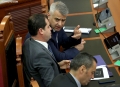 MP Vangjel Dule and Fatmir Mediu during a parliamentary session, in which the request of 35 opposition MPs for the establishment of an investigative commission to verify the procedures on the Port of Durres project was rejected and MP Shkelqim Bullari was sworn in.