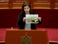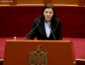 MP Albana Vokshi speaking during a parliamentary session, in which the request of 35 opposition MPs for the establishment of an investigative commission to verify the procedures on the Port of Durres project was rejected and MP Shkelqim Bullari was sworn in.