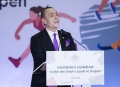 The President of the Mediterranean Games, Davide Tizzoni speaking at the national sports conference Achievements and Challenges of Sport in Albania, held in the Palace of Congresses. During the conference, the participants appreciated the Albanian athletes for their achievements and talked about the steps that should be taken to develop this field.