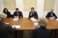 GLOVER'S VISIT TO THE NEW HEADQUARTERS OF THE DP - The head of the ODIHR mission for local elections in Albania, Audrey Glover, the commanding chairman of the Democratic Party, Enkelejd Alibeaj, the legal representative of the DP, Indrit Sefa and MP Gazment Bardhi speaking at a meeting in the new headquarters of the Democratic Party. Glover's visit comes as a result of the series of meetings she is holding with opposition parties before the May 14 local elections in Albania.