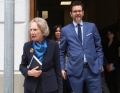 The head of the ODIHR mission for the local elections in Albania, Audrey Glover and MP Gazment Bardhi before a meeting at the new headquarters of the Democratic Party. Glover's visit comes as a result of the series of meetings she is holding with opposition parties before the May 14 local elections in Albania.