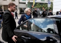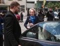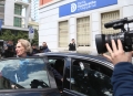 The head of the ODIHR mission for local elections in Albania, Audrey Glover, leaving after a meeting at the new headquarters of the Democratic Party. Glover's visit comes as a result of the series of meetings she is holding with opposition parties before the May 14 local elections in Albania.