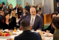 The Mayor of Tirana, Erion Veliaj, the head of the Muslim Community Bujar Spahiu and Grandfather Hajji Baba Mondi during the Iftar dinner, laid out in the premises of the Palace of Congresses, on the occasion of the month of Ramadan. The dinner was organized two days after the release of Prime Minister Edi Rama from the hospital, where he underwent an intervention to remove his appendix.