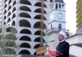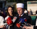 The head of the Muslim Community, Bujar Spahiu, speaking to journalists after the prayer in Skanderbeg Square in Tirana, on the occasion of the Eid al-Fitr holiday, which marks the end of the month of Ramadan.