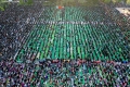 This aerial photo taken on April 21, 2022, shows Albanian Muslims praying at Skanderbeg square on the first day of the Muslim festival marking the end of the holy fasting month of Ramadan in Tirana. Muslims celebrate the Eid Al-Fitr holiday, which marks the end of the fasting month of Ramadan.