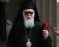 Orthodox Archbishop Anastasios Yannoulatos speaking to the journalists after a meeting with the chairman of the Muslim Community, Bujar Spahiu, to congratulate him on the occasion of Eid-ul-Fitr or the Great Eid, which comes after the holy month of Ramadan.