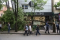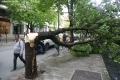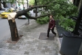 Police and citizen forces walking near the Former Bloc area, where a tree fell down due to the strong wind and bad weather. Fortunately, no one was injured by the falling tree.