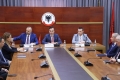 Minister of Justice, Ulsi Manja, Head of SPAK, Altin Dumani and General Prosecutor, Olsian Cela during a meeting held with the heads of the country's prosecutions, where the Council of Minister's recommendations for the fight against crime for the year 2023 were presented. The recommendations focused on the fight against corruption and organized crime, the tightening of the criminal policy regarding domestic violence, the increase in the role of prosecutors in the initiation of investigations and other issues.