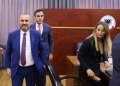 Minister of Justice, Ulsi Manja, Head of SPAK, Altin Dumani and General Prosecutor, Olsian Cela after a meeting held with the heads of the country's prosecutions, where the Council of Minister's recommendations for the fight against crime for the year 2023 were presented. The recommendations focused on the fight against corruption and organized crime, the tightening of the criminal policy regarding domestic violence, the increase in the role of prosecutors in the initiation of investigations and other issues.