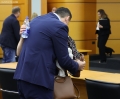 BAJGORA PASSES VETTING - Judge of the Lushnja Judicial District Court, Ersida Bajgora exiting a session of the Independent Qualification Commission, IQC, which in the given decision characterized her as a clean figure at the end of the transitory re-evaluation process. otherwise known as the vetting process. Bajgora passed the three evaluation pillars, the professional side, wealth and integrity.