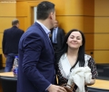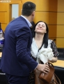 Judge of the Lushnja Judicial District Court, Ersida Bajgora hugging with a family member a session of the Independent Qualification Commission, IQC, which in the given decision characterized her as a clean figure at the end of the transitory re-evaluation process. otherwise known as the vetting process. Bajgora passed the three evaluation pillars, the professional side, wealth and integrity.