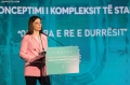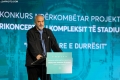 Minister of Education and Sports, Evis Kushi speaking during a ceremony held in the framework of the international competition for the new stadium of the city of Durres. The winner was the Belgian company 51N4E, which will design the stadium as a modern complex which will have training fields, basketball courts and swimming pools. The Belgian studio 51N4E, which won against studios Bjarke Ingels Group, BIG (Denmark) and MVRDV (Holland), is the same studio that designed Skanderbeg Square.