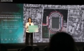 The representative of the Danish architecture studio Bjarke Ingels Group, BIG presenting during a ceremony held in the framework of the international competition for the new stadium of the city of Durres. The winner was the Belgian company 51N4E, which will design the stadium as a modern complex which will have training fields, basketball courts and swimming pools. The Belgian studio 51N4E, which won against studios Bjarke Ingels Group, BIG (Denmark) and MVRDV (Holland), is the same studio that designed Skanderbeg Square.