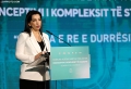Durres Mayor, Emiriana Sano speaking during a ceremony held in the framework of the international competition for the new stadium of the city of Durres. The winner was the Belgian company 51N4E, which will design the stadium as a modern complex which will have training fields, basketball courts and swimming pools. The Belgian studio 51N4E, which won against studios Bjarke Ingels Group, BIG (Denmark) and MVRDV (Holland), is the same studio that designed Skanderbeg Square.