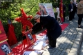 COMMUNISTS FOR MARTYRS DAY - Veterans and Communist Party members with pictures of late Albanian communist dictator Enver Hoxha and communists symbols during a ceremony on the occasion of the 5 May, National Day of Martyrs, at the Mother Albania monument in the Martyrs Cemetery in Tirana.