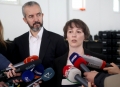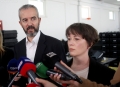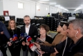 The State Commissioner of Elections, Ilirjan Celibashi, speaking to journalists during an operational test for electronic voter identification devices (PEI) in Lunder, Tirana, as part of the May 14 elections. The use of this device avoids manipulations related to biometric identification.