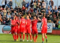 FK Struga-Trim-Lum players posing before the football match, FK Struga-Trim-Lum vs FK Sileks, 3-0, played in the stadium Gradaska Plaza in the city of Struga. After the match, Struga became the fourth Albanian team to win the national championship of North Macedonia, being declared champions 2 weeks before the championship closes.