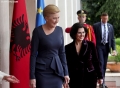 The wife of the Polish President, Andrzaj Duda, Agata Kornhauser-Duda and the wife of the Albanian President, Bajram Begaj, Amarda Baegaj entering the premises of the presidency during Duda's visit to Tirana.