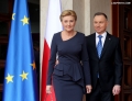 Polish President Andrzaj Duda and his wife Agata Kornhauser-Duda entering the premises of the Presidency during Duda's visit to Tirana.