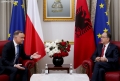 Polish President Andrzaj Duda and Albanian President Bajram Begaj speaking inside the premises of the Presidency during Duda's visit to Tirana.