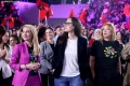 The Minister of Finance and Economy, Delina Ibrahimaj taking a photo with some young people during the closing rally of the Socialist Party for the electoral campaign before the local elections on May 14 in the Olympic Park.