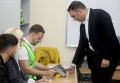 The candidate of the coalition Bashke, Fitojme for the municipality of Tirana, Belind Kellici, voting at the voting center at the Dora D'Istria school in Tirana for the May 14 local elections. In Albania, citizens have started voting for the local elections, to elect the mayors for the next 4 years.