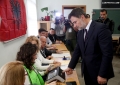 The acting chairman of the Democratic Party, Enkelejd Alibeaj, registering to vote at the voting center in the High School of Economics in Tirana for the May 14 local elections. In Albania, citizens have started voting for the local elections, to elect the mayors for the next 4 years.
