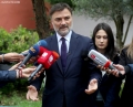 The acting chairman of the Democratic Party, Enkelejd Alibeaj, speaking to journalists after voting at the voting center in the High School of Economics in Tirana for the May 14 local elections. In Albania, citizens have started voting for the local elections, to elect the mayors for the next 4 years.
