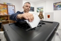 The candidate of the coalition Bashke, Fitojme for the municipality of Durres, Igli Cara, voting in the premises of a school in Durres for the local elections of May 14. In Albania, citizens have started voting for the local elections, to elect the mayors for the next 4 years.