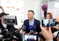 The candidate of the coalition Bashke, Fitojme for the municipality of Durres, Igli Cara, speaking to journalists after voting in the premises of a school in Durres for the local elections of May 14. In Albania, citizens have started voting for the local elections, to elect the mayors for the next 4 years.