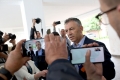 The candidate of the coalition Bashke, Fitojme for the municipality of Durres, Igli Cara, exiting after voting in the premises of a school in Durres for the local elections of May 14. In Albania, citizens have started voting for the local elections, to elect the mayors for the next 4 years.
